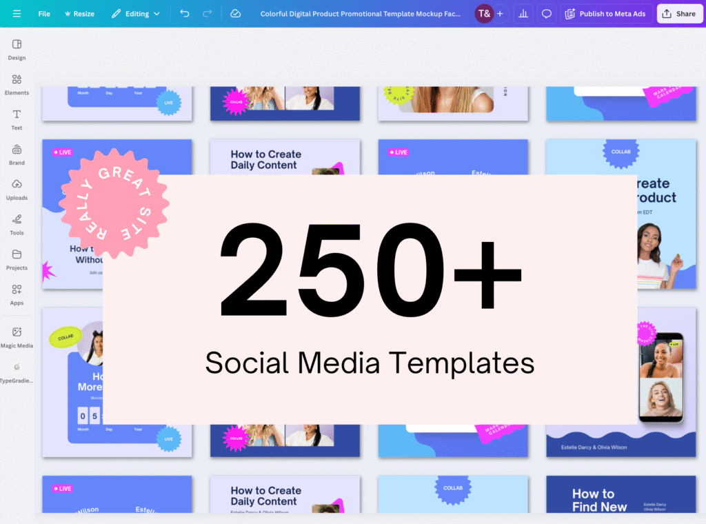 Access to our library of 1,000+ Canva templates for Instagram, TikTok, YouTube, Pinterest, Facebook, and Reels